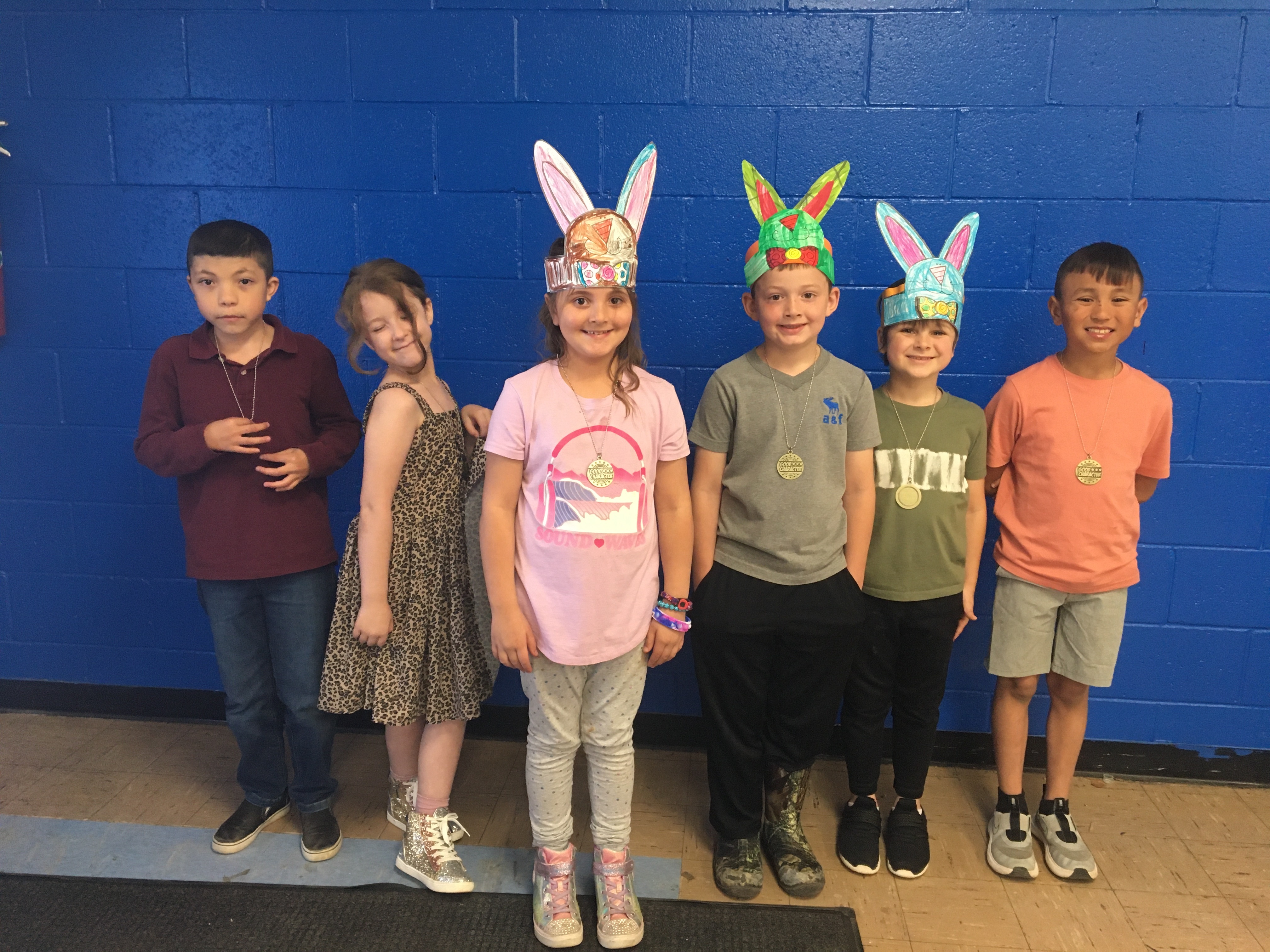 Third and Fourth grade March Character winners, L-R: Maci Young, Megan Cook, Tucker Samuels, Jackson Smith, Nery Sierra, Cash Sawney