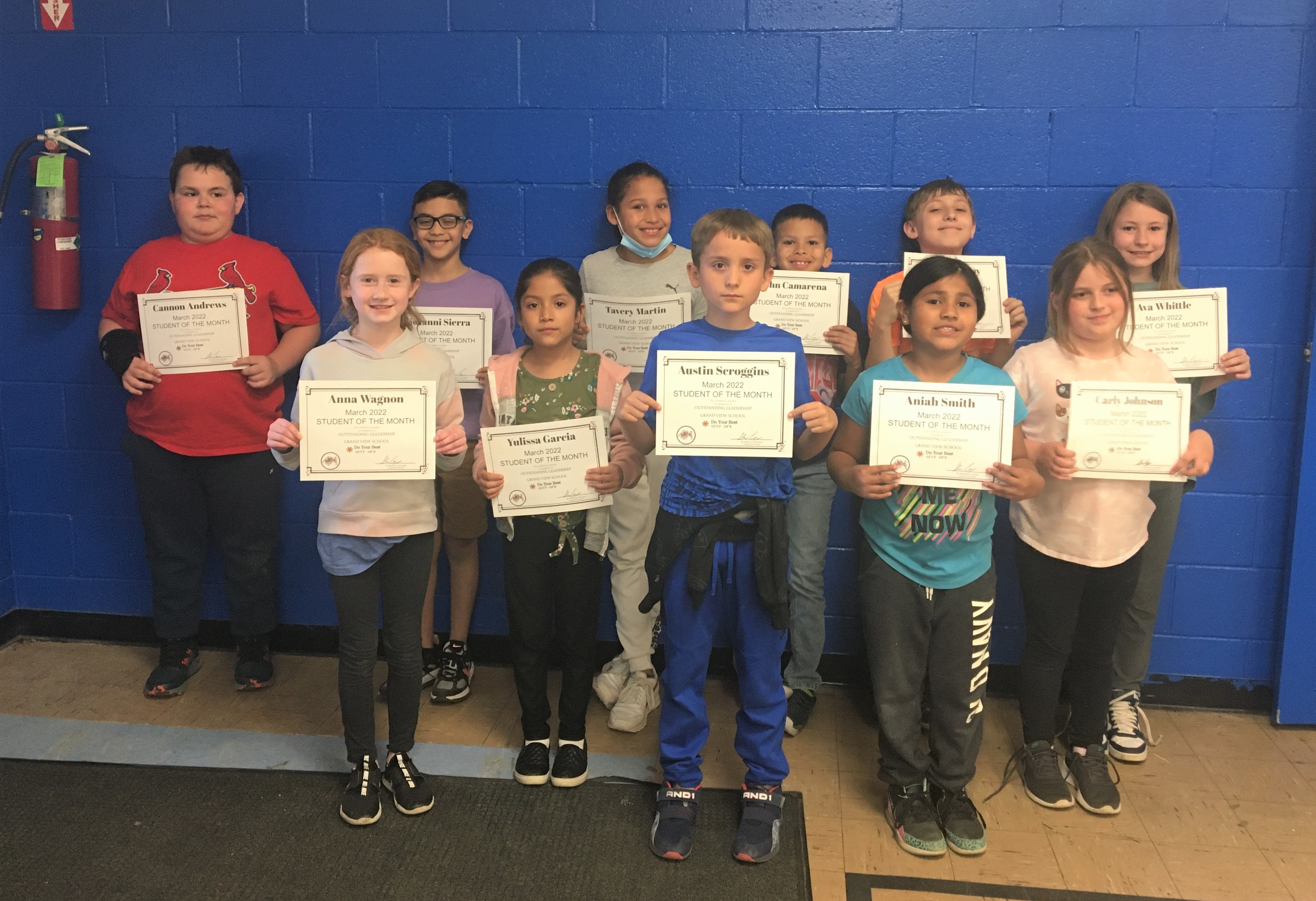 Grand View School third and fourth grade students who were honored as March Students of the Month are, front row, from left: Anna Wagnon, Yulissa Garcia, Austin Scroggins, Aniah Smith, Carly Johnson. Back row: Cannon Andrews, Giovanni Sierra, Tavery Martin, John Camarena, Fletcher Wray, Ava Whittle. Not pictured: Landyn Smith, Payton Phillips